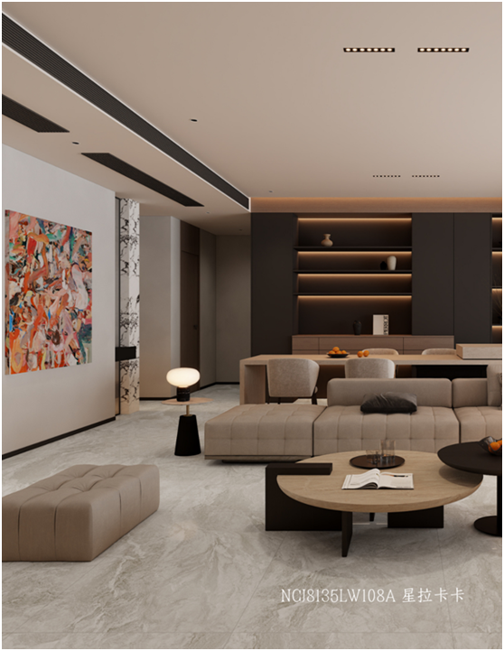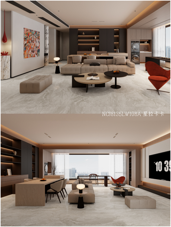 墙地对缝通铺600*1200柔光砖,显大又高级
