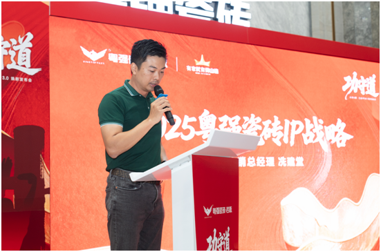发布会以一曲雄浑有力的粤强之歌《瓷砖一代宗师》大合唱开场,瞬间点燃现场气氛 。集团营销总经理冼建堂先生首先致欢迎辞,阐述了品牌初心与本次IP合作的战略意义 。随后,粤强品牌总经理谢访林先生登台,深度分享了粤强的“功守道”战略:以开拓市场为“功”,以坚守品质与文化为“守”,功守合一,方成品牌长远发展的“道” 。