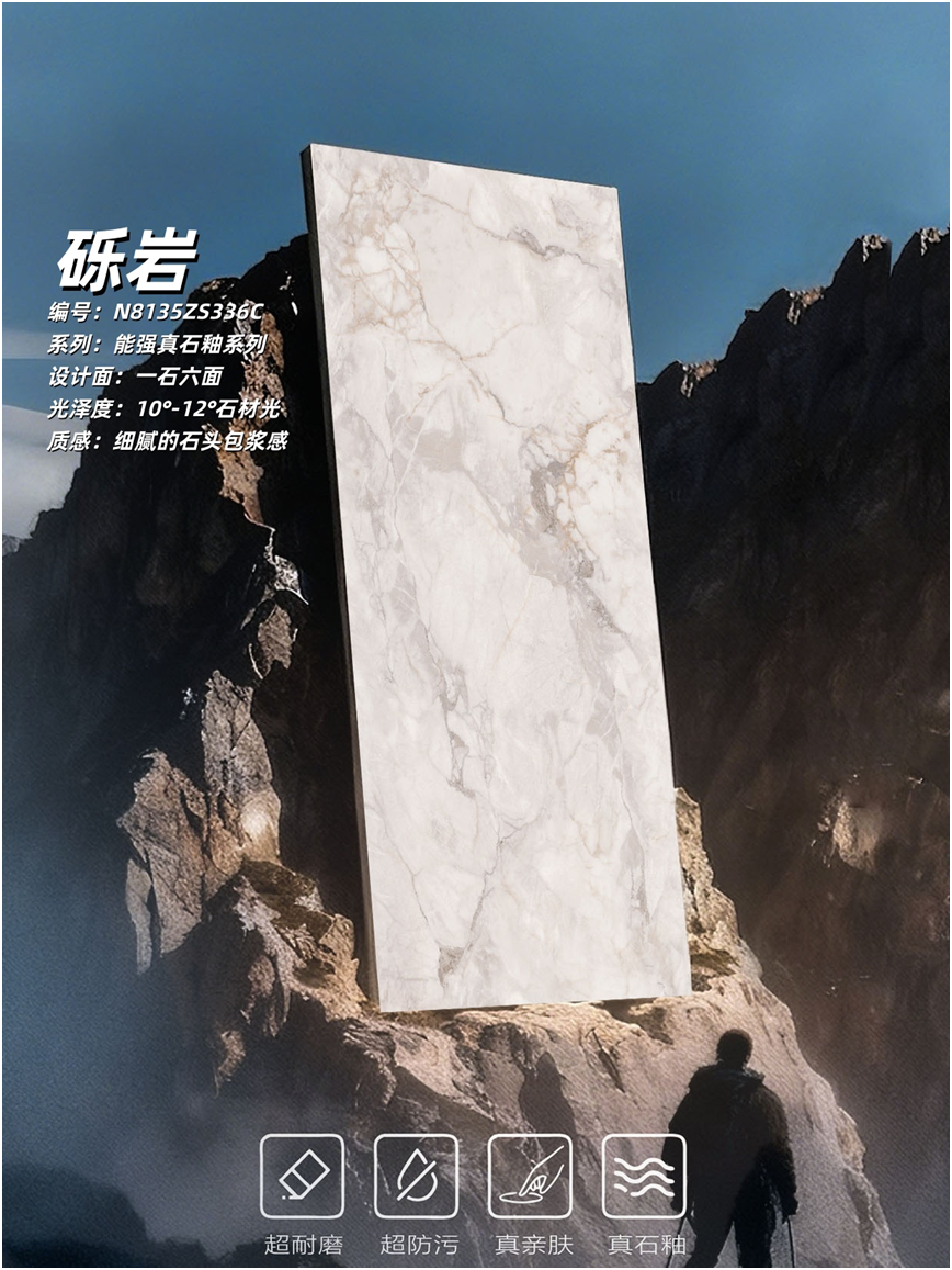 当山川岩石的肌理被复刻进人居,能强真石釉系列「砾岩 N8135ZS336C」,以自然为笔、工艺为墨,将亿万年地质沉淀的磅礴与细腻,凝于一砖之上,为家居空间注入原生力量与高级质感。