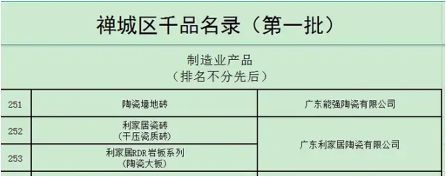 近日,佛山市禅城区 "千品千亿" 质量品牌建设工作专班办公室正式公布第一批 "千品" 名录,能强凭借在标准引领、以质取胜、创新升级、价值创造四大制造业核心指标的卓越表现,成功入选,成为禅城建陶行业高质量发展的标杆典范。