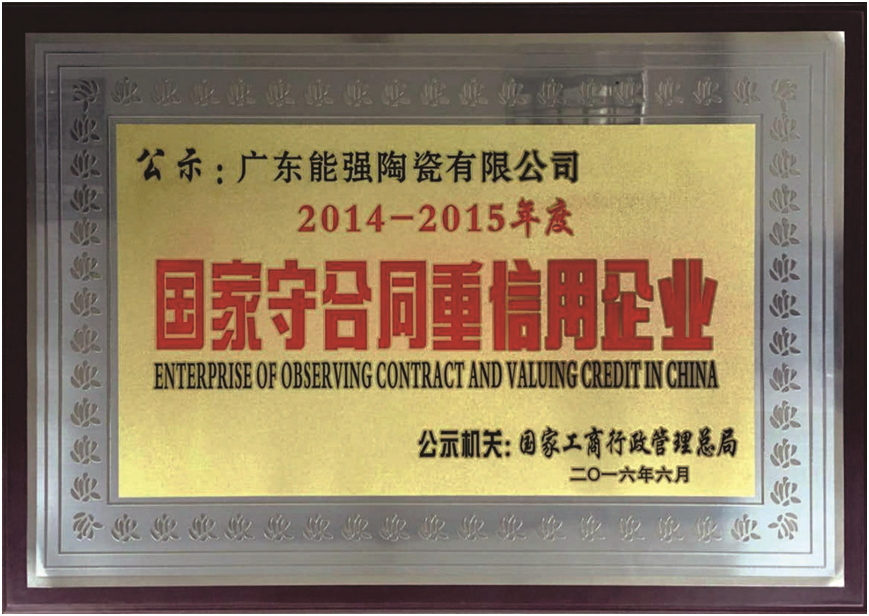能强不仅拥有完善的企业标准体系,还深度参编《陶瓷砖防滑性等级评价》《户外装饰瓷砖》等多项国家及行业标准,以高标准定义行业品质。企业自成立以来始终恪守诚信经营准则,连续多年获评佛山市守合同重信用企业,信用评级保持 AAA 级,以规范管理与良好信誉,成为行业标准化建设与诚信经营的双重榜样。