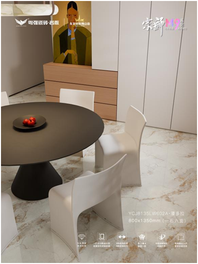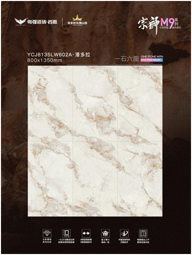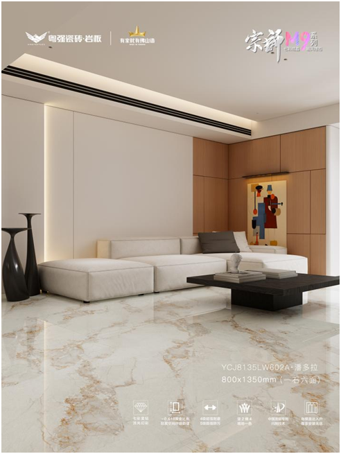 宗师M9七彩结晶系列,以中国发明专利·闪抛技术,在砖面构筑致密晶体层,灯光下绽放出如星河般的动态光影效果,将“步步生金”的东方吉祥寓意,完美融入现代家居设计。
